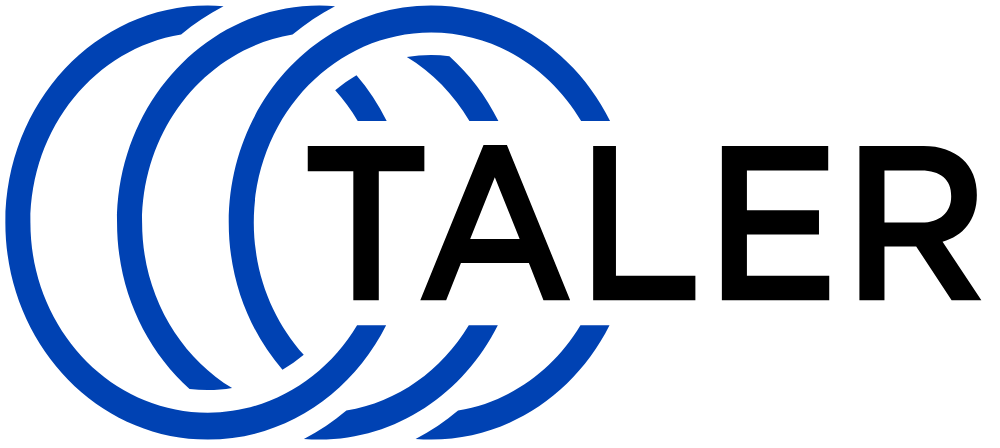 The primary logo is the default Taler logo version and should be used on light backgrounds whenever possible. It is the preferred option for websites, wallet screens, documentation, printed materials etc. with a white or very light surface.
